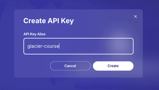 Once you've created and retrieved the key, you will be able to make authenticated queries by passing in your API key in the x-glacier-api-key header of your HTTP request.