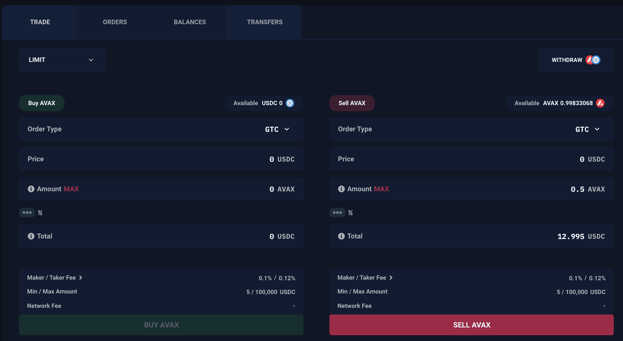 Make sure the network is set to Fuji C-Chain and enter the amount you want to withdraw. Click on the Withdraw button and confirm the transaction in your wallet.