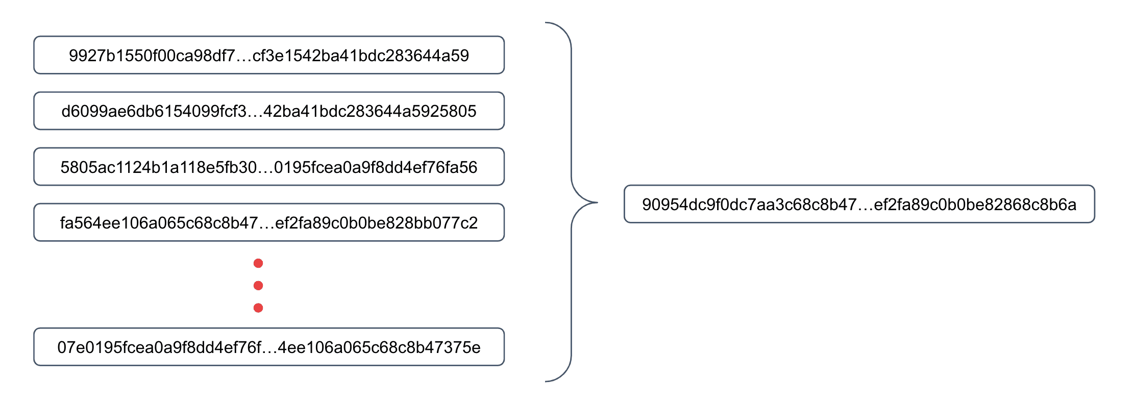 Signature and public key aggregation combines multiple signatures of the same message into a single short signature, which makes transportation and verification much more efficient.